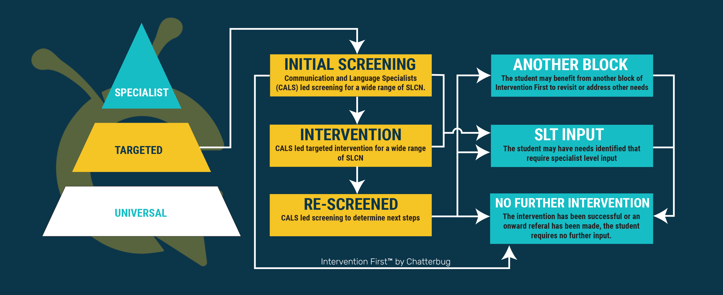 We know from experience, a significant proportion of children with SLCN do not require specialist SLT assessment, they require prompt ‘targeted’ therapy. We also understand it is extremely helpful for this therapy to be delivered within the school setting during term time – this is Intervention First™